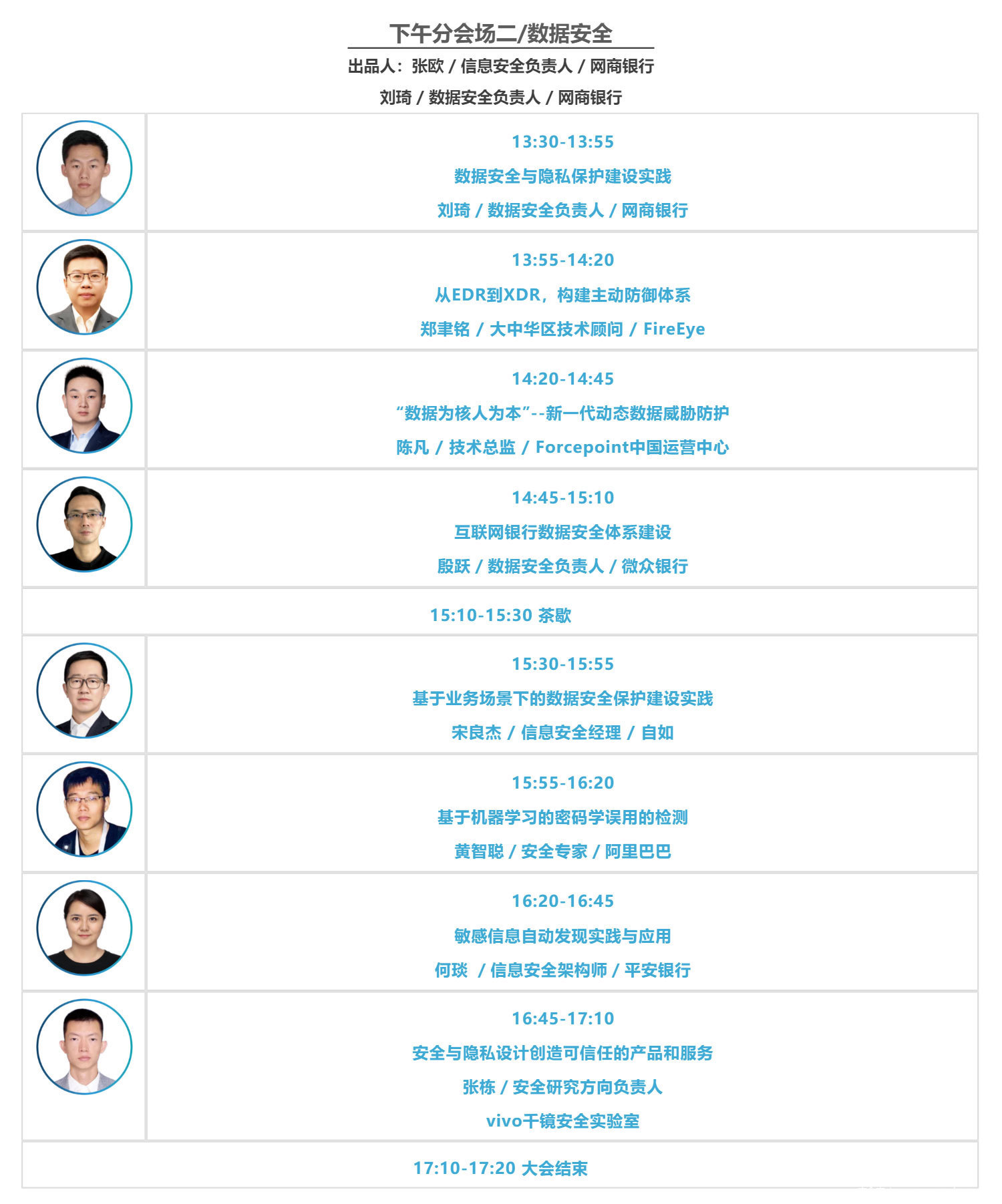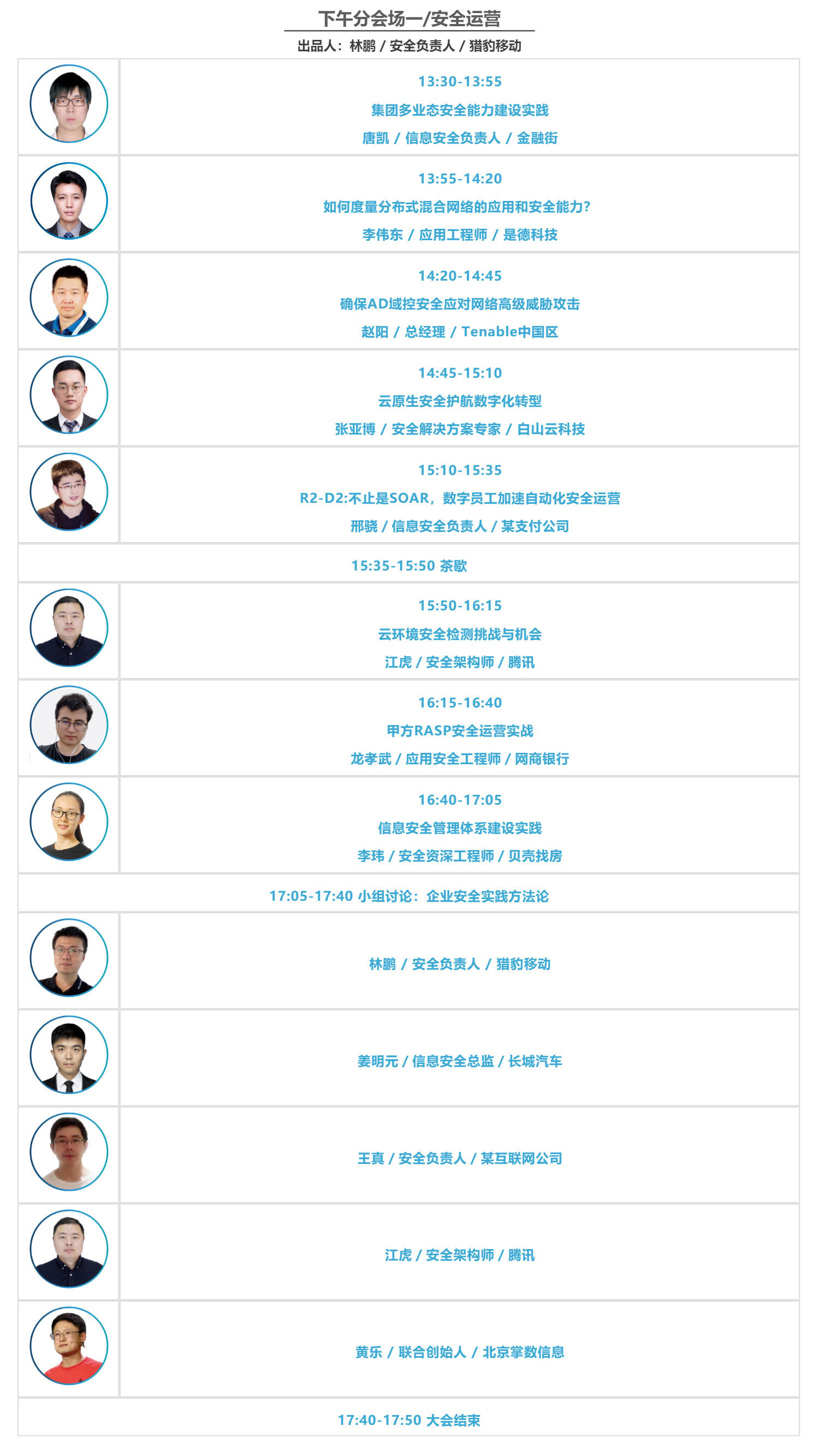 本次峰会由原先下午两个分会场增加至四个,分会场主题分别调整为安全运营专场、数据安全专场、零信任专场、开发安全专场,每个分会场诚邀重量级嘉宾(参见议程)担任出品人,议程紧扣行业热点话题,选题方向更加明确,相信能为与会者带来更多具有实践与借鉴意义的干货分享。