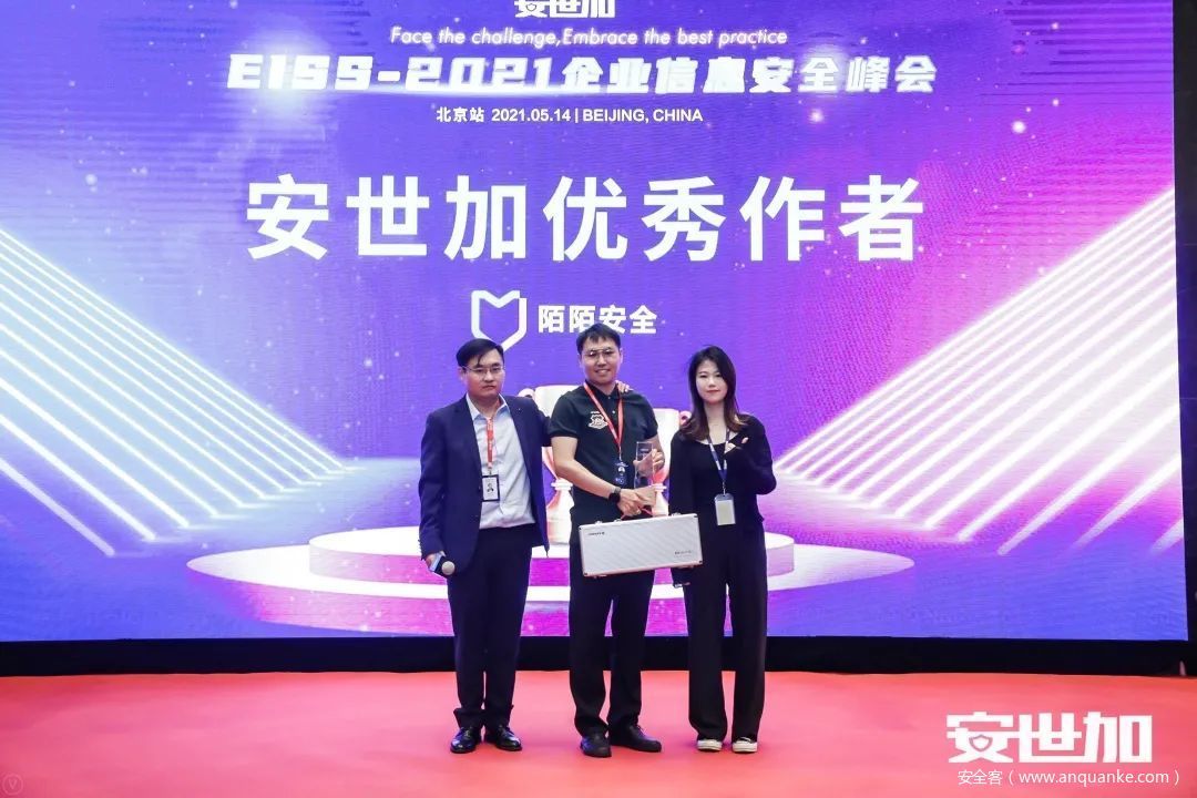 2020年上海站,优秀作者曾授予两位年轻的安全专家,本届峰会上,优秀作者奖颁给了来自某上市公司的信息安全负责人 肖寒,他撰写的系列文章《企业信息安全建设实践之路》是对其工作实践中的精辟总结与提炼,在分享的同时也为业内提供了有力的借鉴。此外,感谢陌陌安全为本届优秀作者独家赞助的千元大奖。