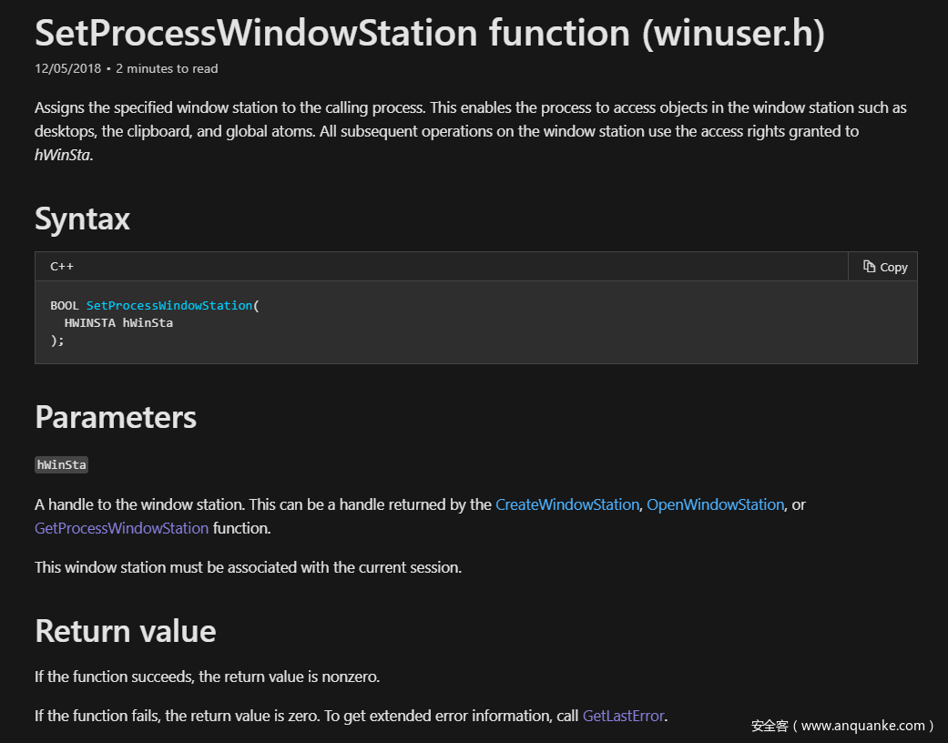 既然有Get方法,自然也会有Set方法(https://docs.microsoft.com/en-us/windows/win32/api/winuser/nf-winuser-setprocesswindowstation)