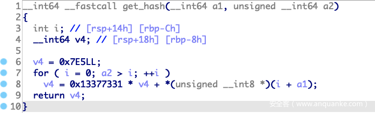 get_hash,返回一个hash值,返回后只取低12位,根据这个hash得到hash_map[hash&0xfff],先将hash_map[hash&0xfff]原有的值保存在prev_hash_map,然后将0x30 chunk的地址存入hash_map[hash&0xfff]