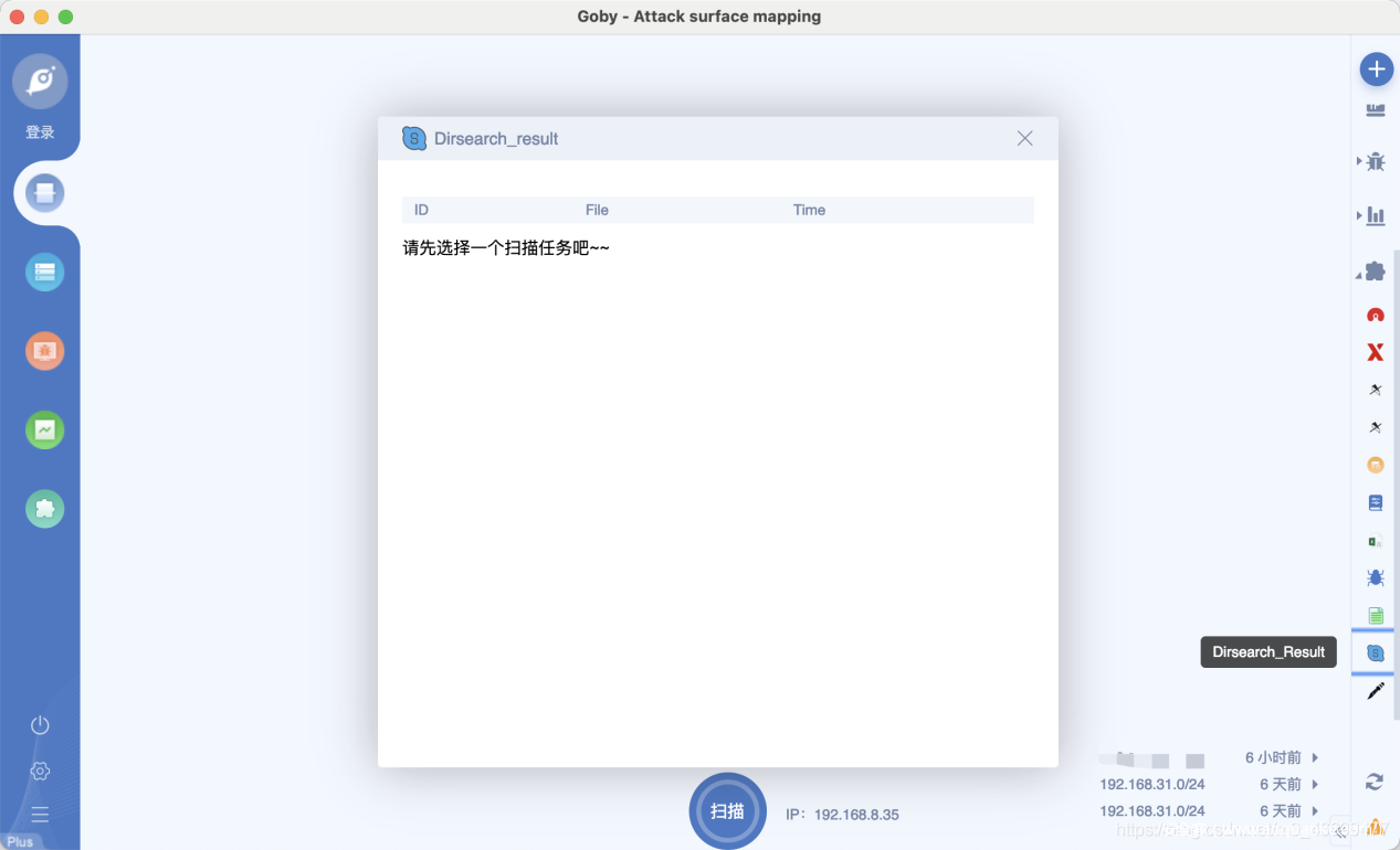这样 Goby 界面就会在 http、https 协议显示 Dirsearch 按钮。