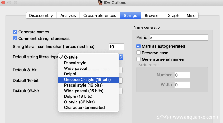 IDA打开section0.pe,分析完以后这里选Unicode