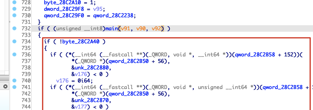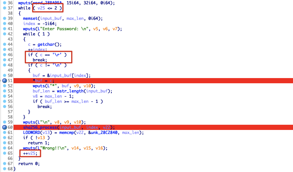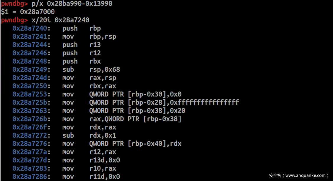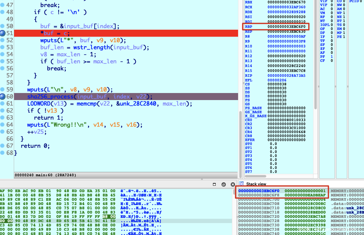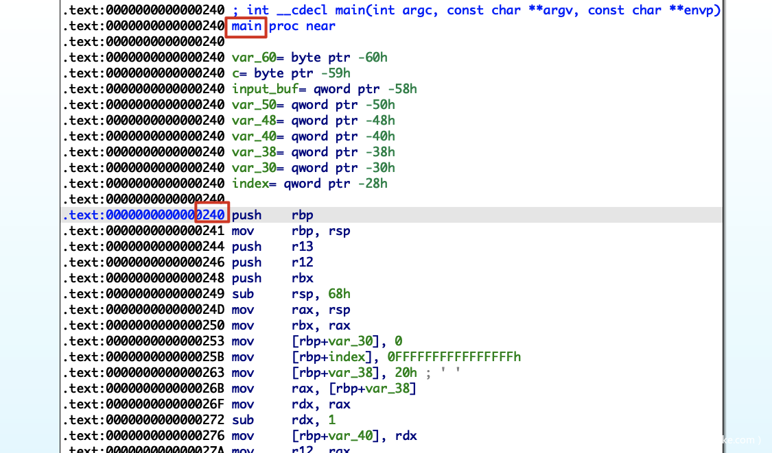 减去Enter Password:的offset,即0x28ba990-0x13990 = 0x28a7000,然后以0x28a7000为基址查看main函数的代码
