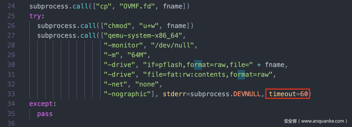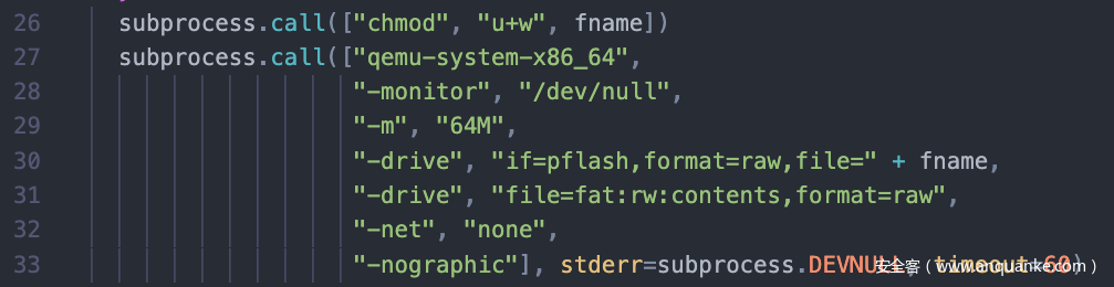 仔细看启动命令,貌似没加载任何可疑的虚拟设备,排除掉QEMU逃逸