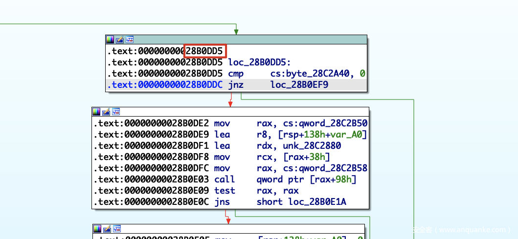 对应的汇编代码,尝试劫持到0x28B0DD5
