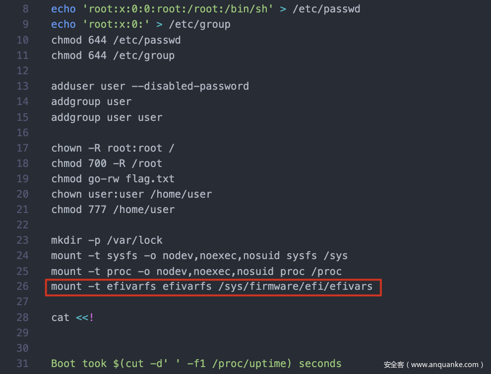 解开contents/initramfs.cpio,看到init文件。这里有一条mount -t efivarfs efivarfs /sys/firmware/efi/efivars,怀疑是UEFI PWN