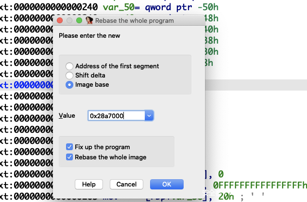 用0x28a7000修正IDA分析的基址