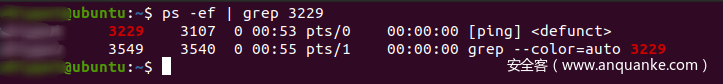 我们看到当前断点的 pid 是 3229 , 这里确实启动了一个 ping 进程