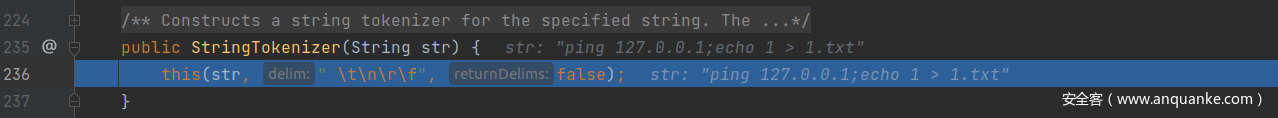 在这个地方我们注意到利用 StringTokenizer 对输入的 command 进行了处理
