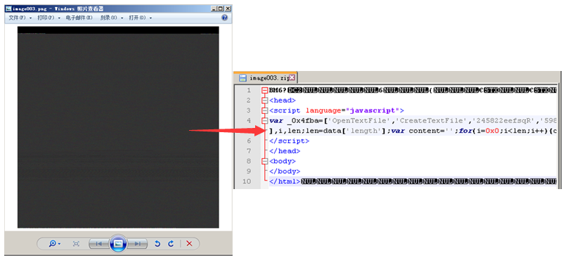 使用函数WIA_ConvertImage 将所释放的image003.png转换为存储恶意hta数据的image003.zip,之后使用系统组件mshta.exe来加载执行image003.zip。