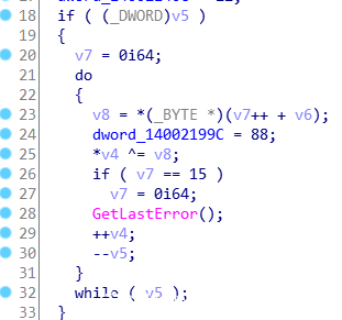 Winvoke.exe中添加了大量无效的系统调用以混淆执行流程,其通过下图中的算法以密钥“*$LvOAgHyZ)dM”从.KDATA区段中解密出核心RAT模块,并在内存中加载执行。
