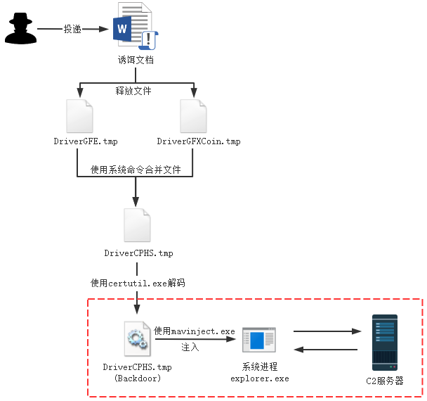| DriverGFE.tmp(第二次) | 使用DriverUpdateFx.exe(certutil.exe)解码,保存为DriverGFE.tmp,即最终的后门模块。 |