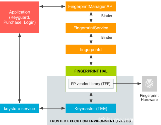 `TEE` 是独立于CPU和操作系统的安全芯片系统(`iOS` 中叫 `Secure Enclave`)。指纹传感器硬件线路直连安全芯片,直接将扫描的生物数据发送到安全芯片内部进行验证,安全芯片只将验证结果告知操作系统,保证生物数据的安全。