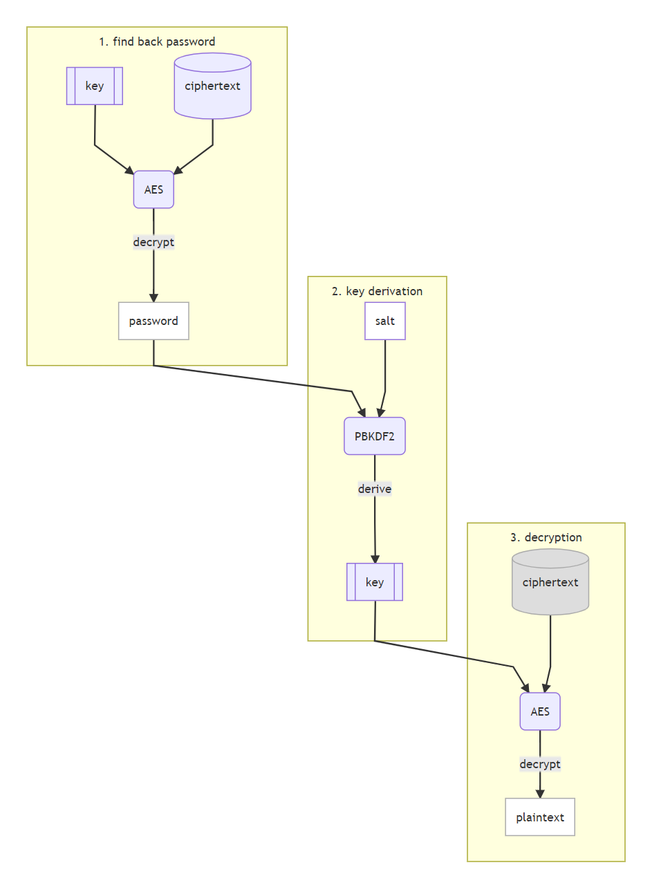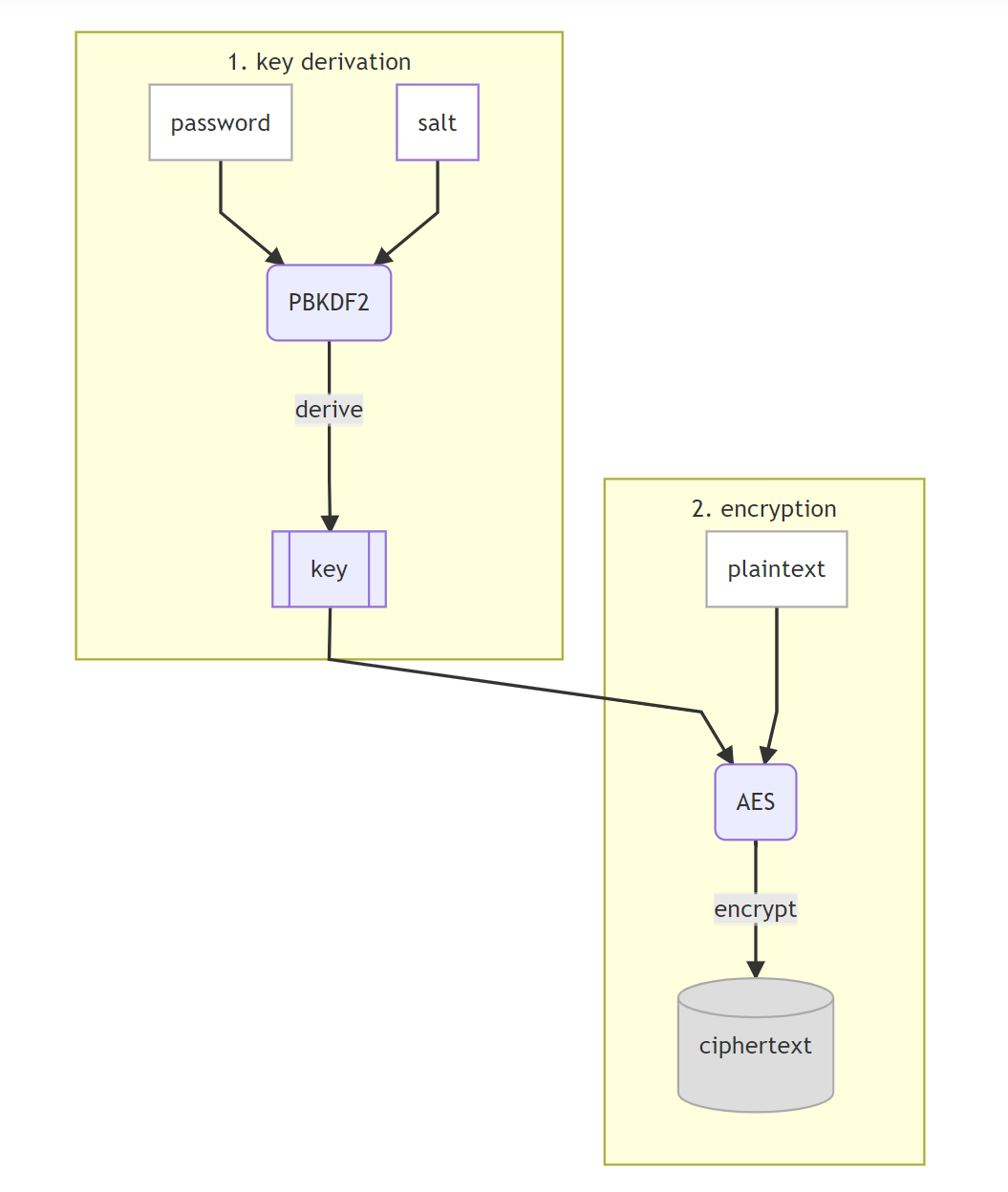 大多数密码管理器的加密核心原理如上图所示,在具体细节处理上都可能做一些独特的设计和扩展。