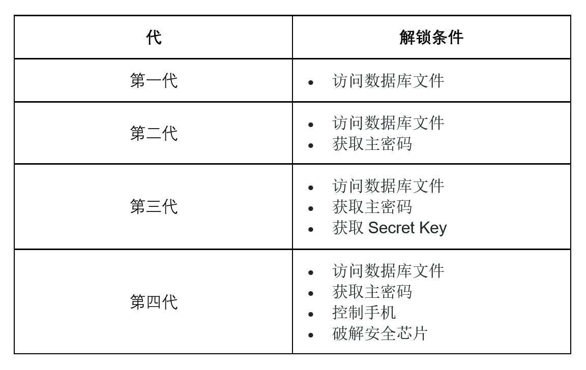 回顾整个密码管理器的发展进化史,根据加密方式的不同、破解难度的高低,可以将密码管理器大概划分为4代。