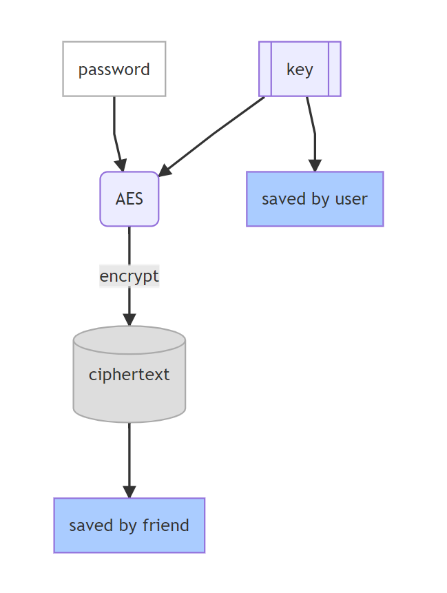 神锁离线版加密主密码的密钥由安全芯片生成并保护,好友没有密钥,不能解密获取主密码,也不能访问用户的数据库。这个设计只需要信任好友帮助保存一个加密文件即可,对方无法看到数据库。