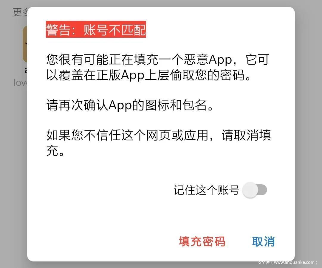 显示请求自动填充的信息,如用户名、密码等,防止恶意网站或App通过隐藏密码框来骗取密码。