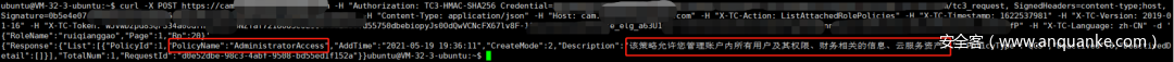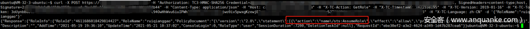从上图可见,攻击者可以获取角色的TmpSecretID以及TmpSecretKey。