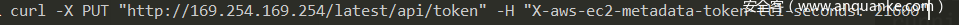 X-aws-ec2-metadata-token-ttl-seconds用于指定生存时间(TTL)值(以秒为单位),上文中生成的token有效期为6小时(21600秒),在IMDSv2中21600秒是允许的最大TTL值。此请求将会返回一个token,后续访问元数据服务,需要在HTTPheader中携带此token,见如下请求: