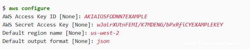 在使用云命令行工具之前,应先配置API密钥,以AWSCLI工具配置举例,可以将:
