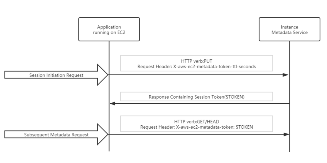 在IMDSv2中,如果用户想访问元数据服务,首先需要在实例内部向IMDSv2发送一个HTTPPUT请求来启动会话,示例如下: