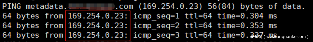 可以PING云厂商所提供的元数据服务域名,以查看其IP地址