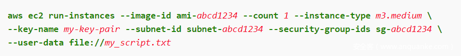 以AWS举例,攻击者可以将恶意代码写入my_script.txt文件中,然后执行如下指令将my_script.txt文件中内容导入userdata中。