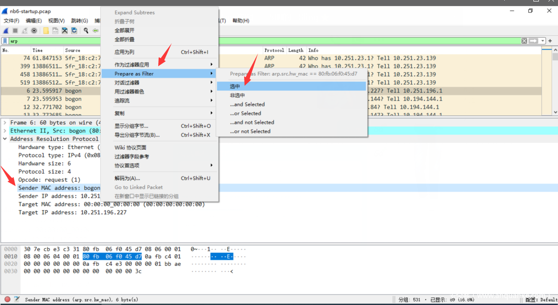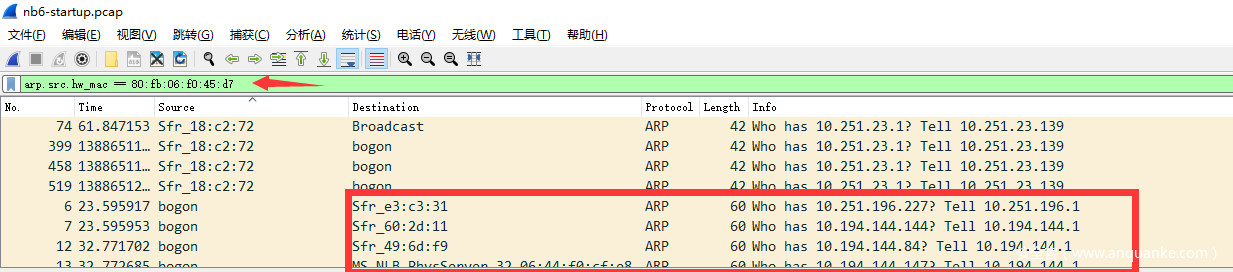 - 需要注意的是,将解析物理地址调整出来,便于观察mac地址来核查可疑的痕迹