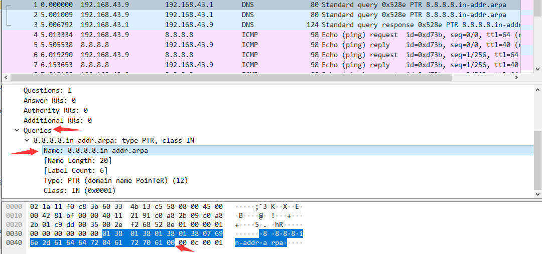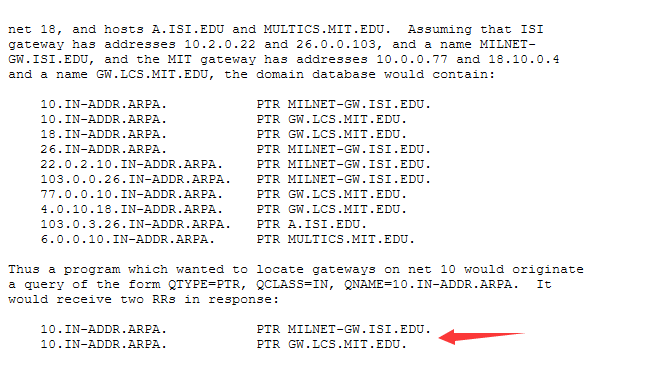 10.IN-ADDR.ARPA —>A请求查PTR中的网关—> 最后PTR请求将IP地址反向查询发给网关进行查询