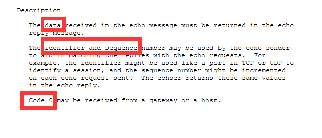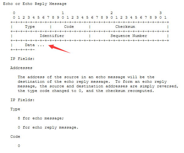 - 如果您发现其他值,请看RFC文档对应字段的解释 比如type=3为目标不可达,type=11 为超时,type=12 参数存在问题等。code是具体type对应的不同原因值。