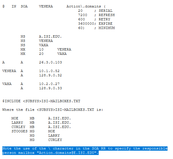 以下是一个示例文件,该文件可用于定义ISI.EDU区域,并加载了ISI.EDU的来源: