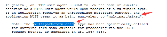- Multipart Types 多部分类型。如果应用程序无法识别,则当成multipart/mixed。multipart/form-data用于post请求表单。HTTP头非常多,遇到疑惑的地方,可以搜一下RFC文档的解释。