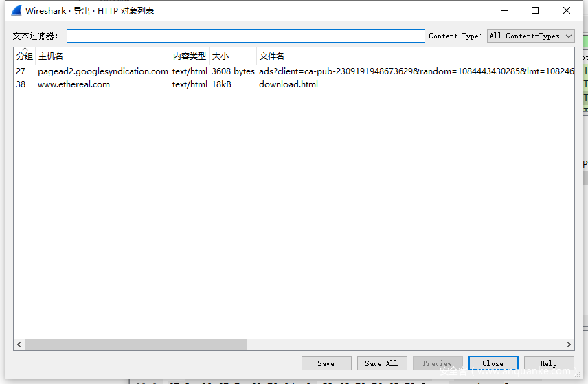 - wireshark可以使用文件—导出对象—HTTP查看整体的URL请求。统计功能也是一种多维观察的对抗理念。比如,是否存在基于文件名和路径的遍历攻击流量。