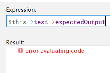 具体来讲,$this->test中应该有个expectedOutput,正常情况下,应该控制$this->test为一个对象,这个对象有expectedOutput属性。