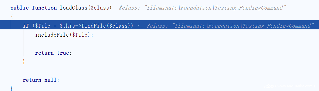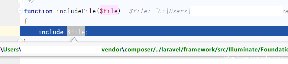 可以看到,此处根据路径相对关系对Illuminate/Foundation/Testing/PendingCommand进行了加载,最终通过下面的includeFile进行了include,