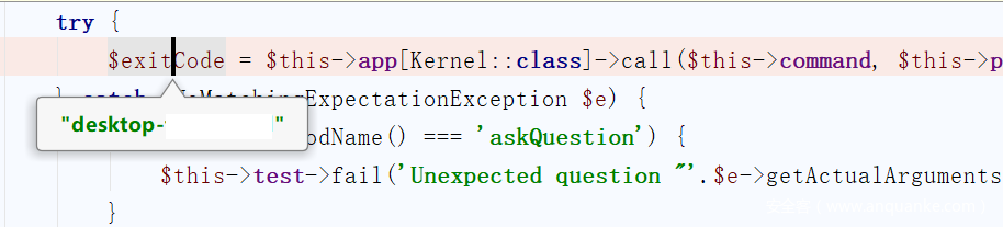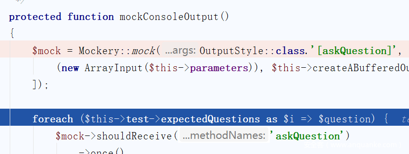 这样的话就没法到可能的执行命令点了,整个流程就被打断了。解决的思路就是参加foreach循环的这个$this->test->expectedOutput应该存在,且是个数组,与之类似的还有$this->test->expectedQuestions。