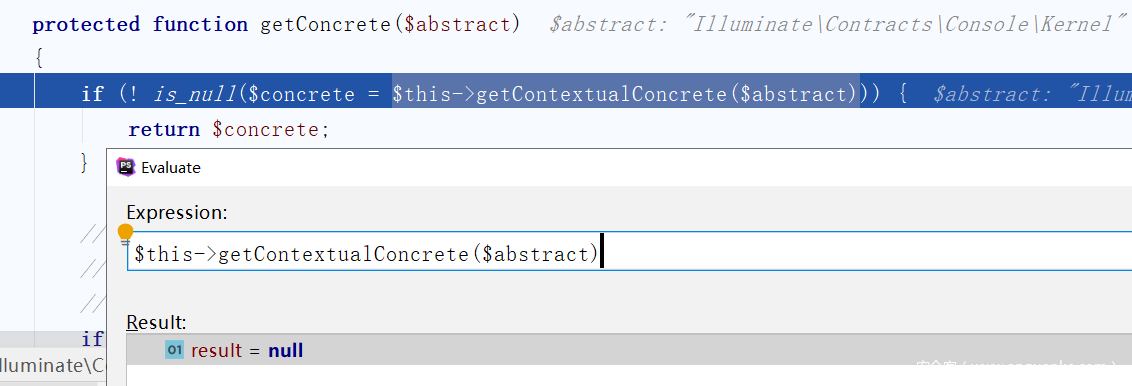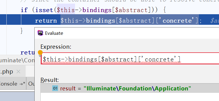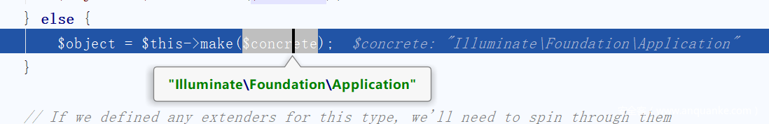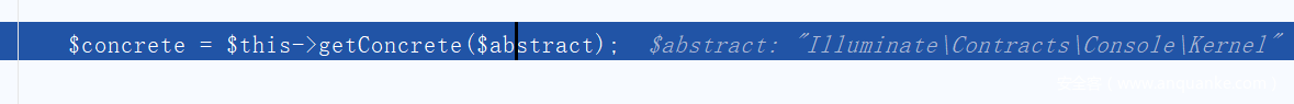进入,此时$concrete为Application,$abstract为Kernel,且$concrete非Closure的实例,