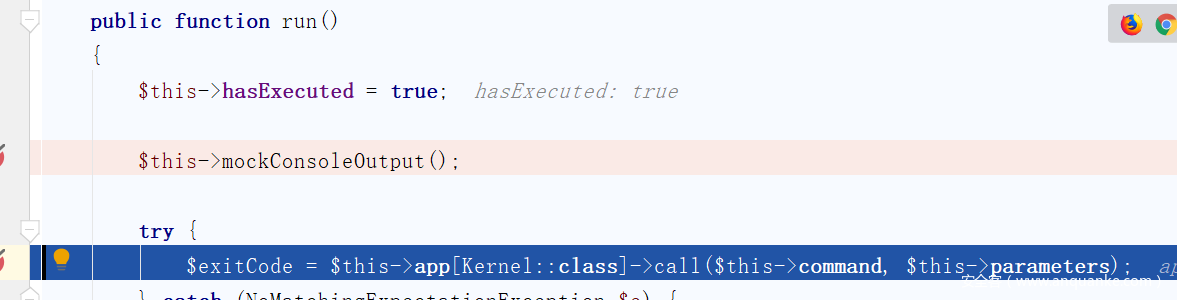 经历了mockConsoleOutput(),最终顺利走回run(),到达可能的命令执行点。