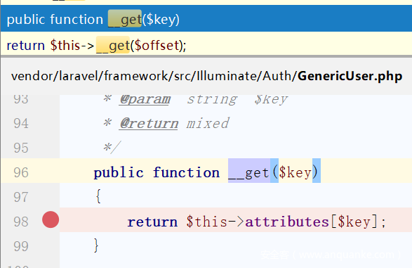 接下来需要找一个合适的__get(),比如下面这个就不一定合适,
