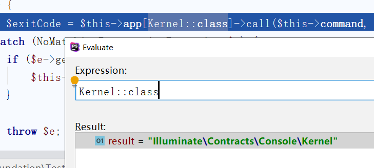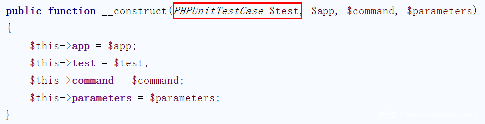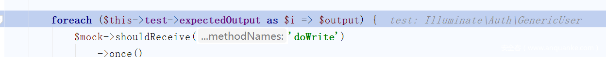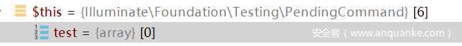 查看之后,可以看出,按照Laravel本身的设计,$this->test应该是一个Test类,经过学习网络上的资料,Test类一般不会被加载。这样的话,不好找一个天然的有expectedOutput的类。
