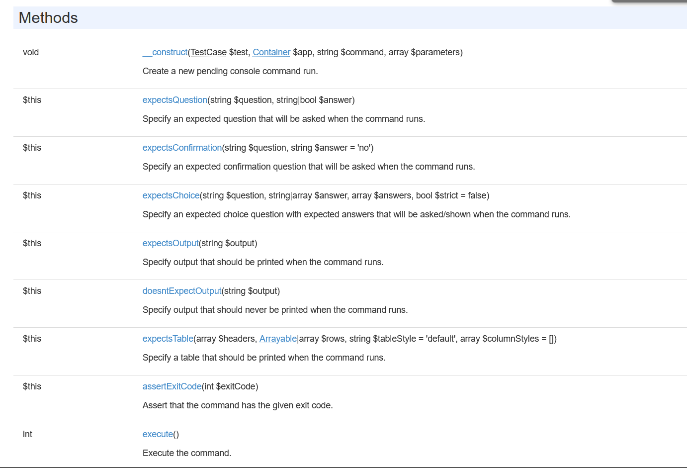$pendingcommand = new Illuminate\Foundation\Testing\PendingCommand("system",array('whoami'),$genericuser,$application);