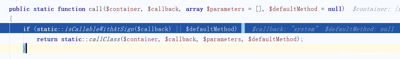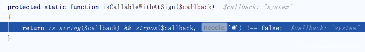 先进入isCallableWithAtSign,里面判断$callback中是否有@,