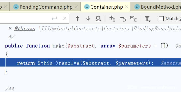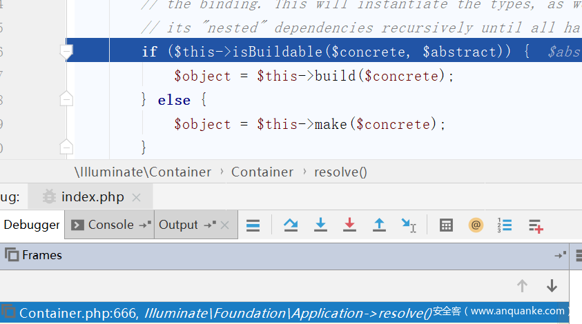 继续跟进,进入了Container的make,其内部又调用了resolve,