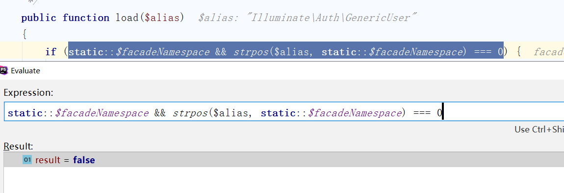 强制步入,此时调试过程会直接进入AliasLoader->load(),