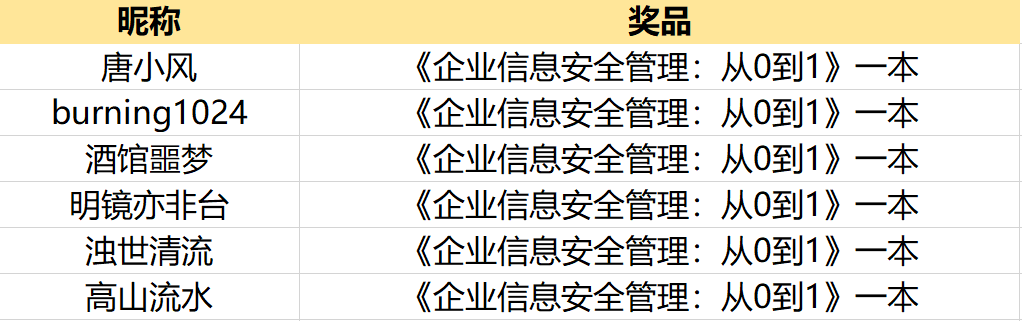 我们将抽取6名用户,向每人赠送一本《企业信息安全管理:从0到1》。