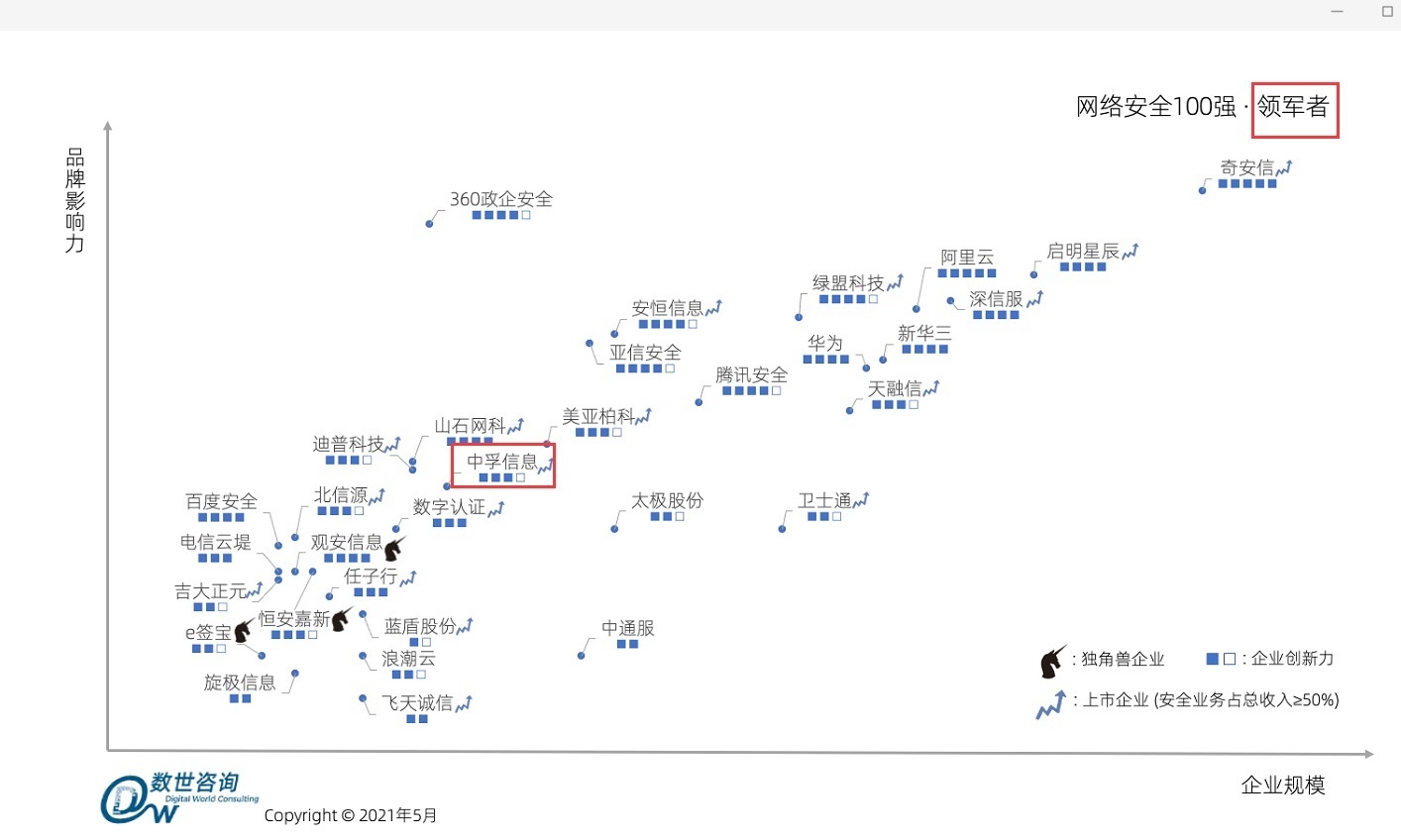 日前,国内数字化产业第三方调研与咨询机构数世咨询发布《中国网络安全百强报告(2021)》(以下简称《百强报告》),中孚信息继2020年后再度进入 “网络安全100强·领军者”行列。