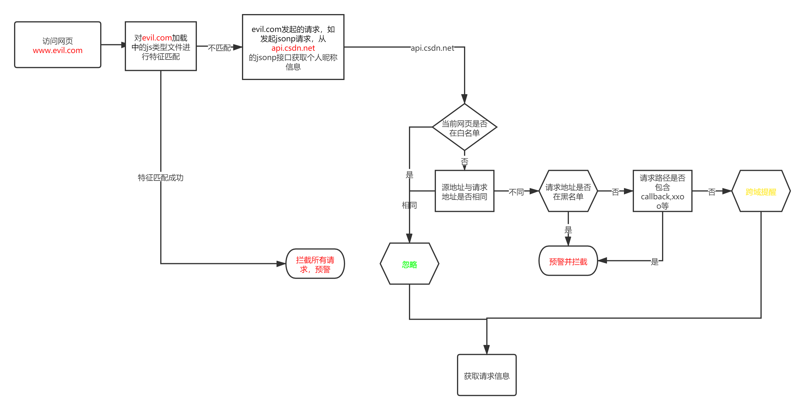 - 对于页面发出的所有请求,对于源地址与目的请求地址,如果相同则忽略,如果不同则进入下一步