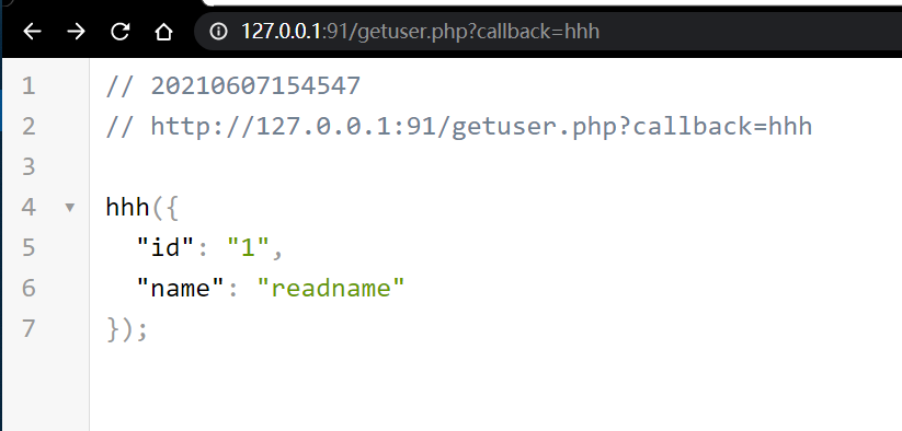 如果某些站点存在jsonp劫持漏洞,如web1这个站点有个jsonp接口暴露着,功能就是返回用户的姓名: