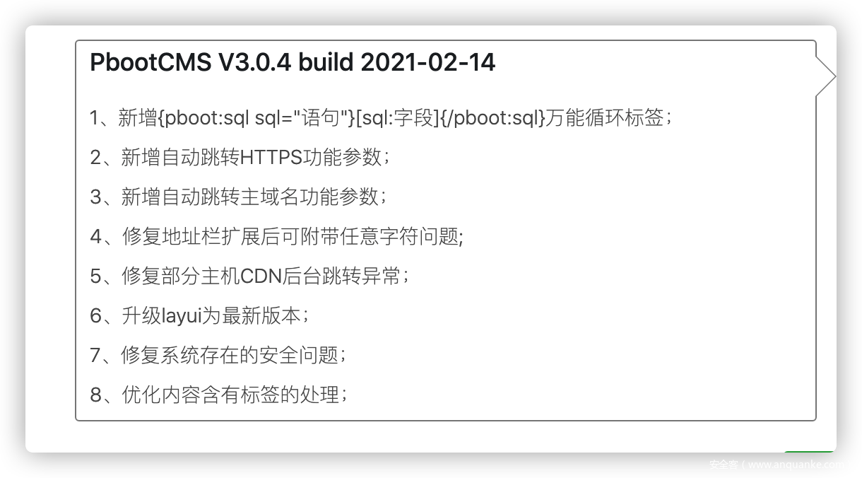 本文记录了针对PbootCms V3.04前台RCE的挖掘过程,文章很早之前就写了,由于该CMS前几天才做了修复,所以将挖掘过程分享出来